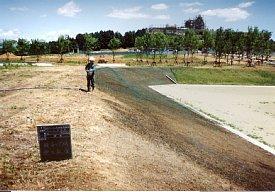 種子・肥料・ファイバー類・安定剤・着色剤・水を混合して、ハイドロシーダー機を用いて、法面や平面に吹付ける工法です。緑化を迅速かつ安価に行う最も簡易的な方法です。