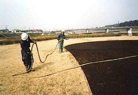 種子・肥料・人工土壌・ファイバー類・安定剤・水を混合しハイドロシーダー機を用いて吹付ける工法です。